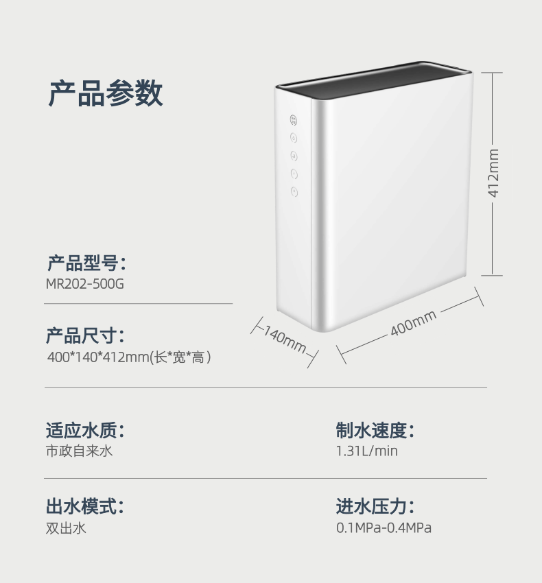云米小白龙800G家用净水器直饮RO反渗透800G无桶净水机 小白龙800G