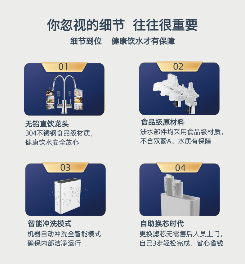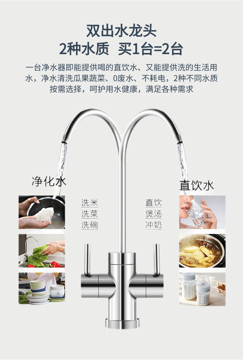 锐普800G锐普纯水机Q8新款家用RO反渗透净水器0陈水净水机通用滤芯U8