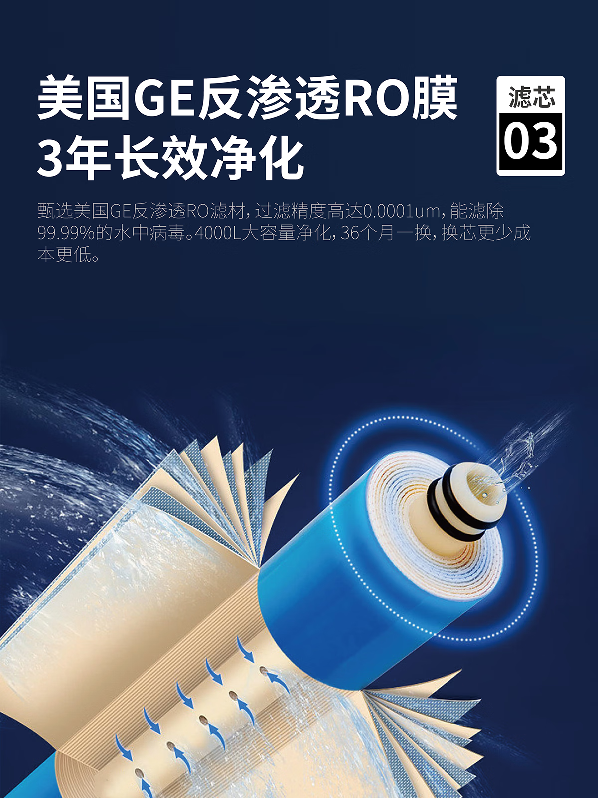 KEMFLO溢泰KEMFLO康富乐RO-B-3-50家用直饮纯水机RO膜反渗透净水器厨下型