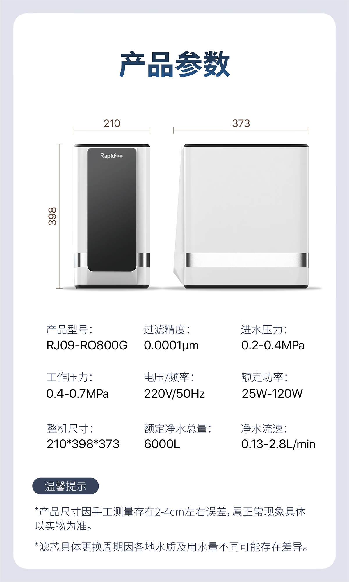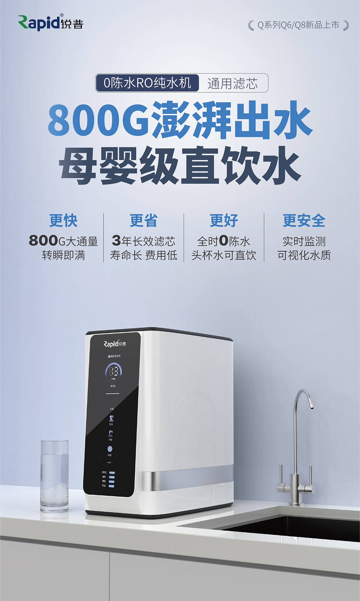 云米小白龙800G家用净水器直饮RO反渗透800G无桶净水机 小白龙800G