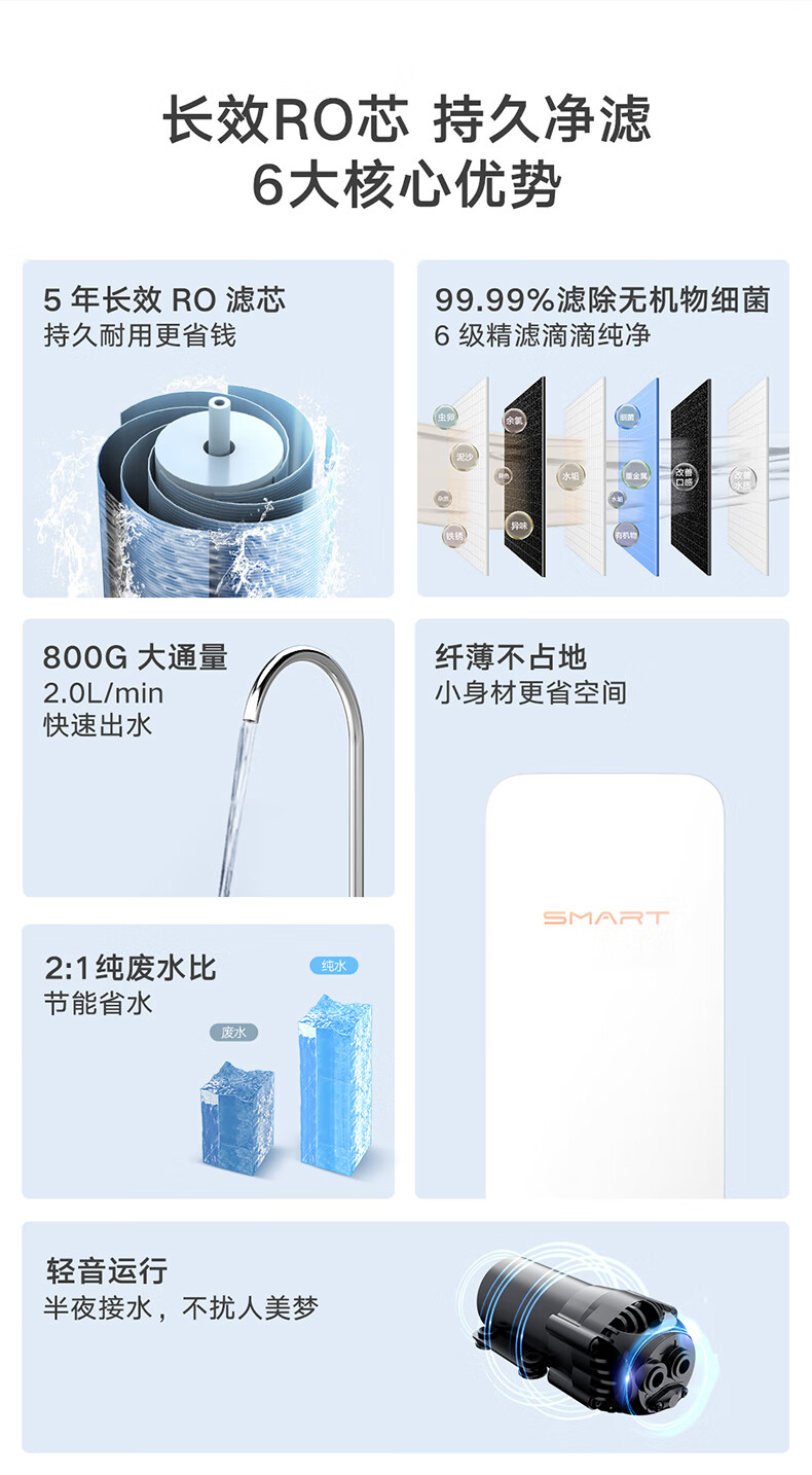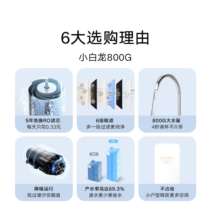 锐普800G锐普纯水机Q8新款家用RO反渗透净水器0陈水净水机通用滤芯U8