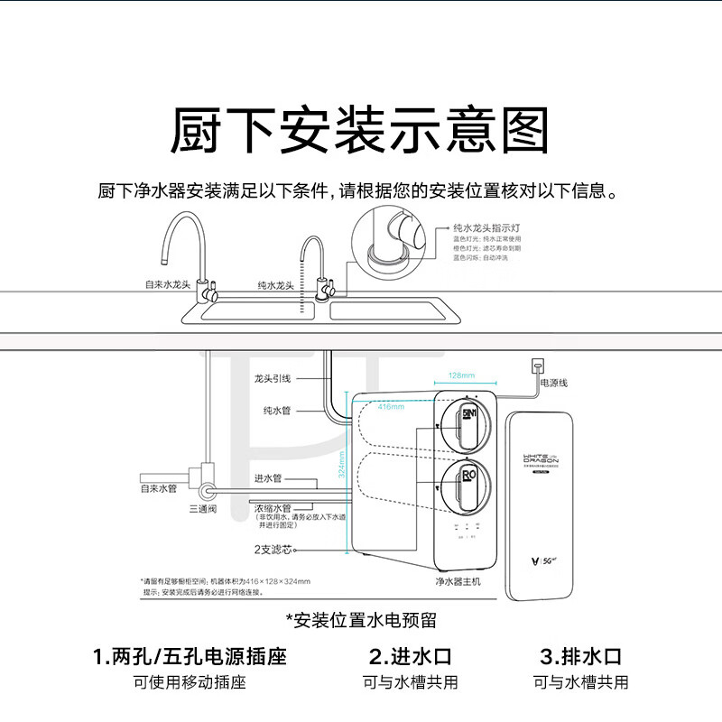 慕辰 MOSSEN净水器家用大通量500G无桶双出水RO反渗透厨房台下式过滤器MR202