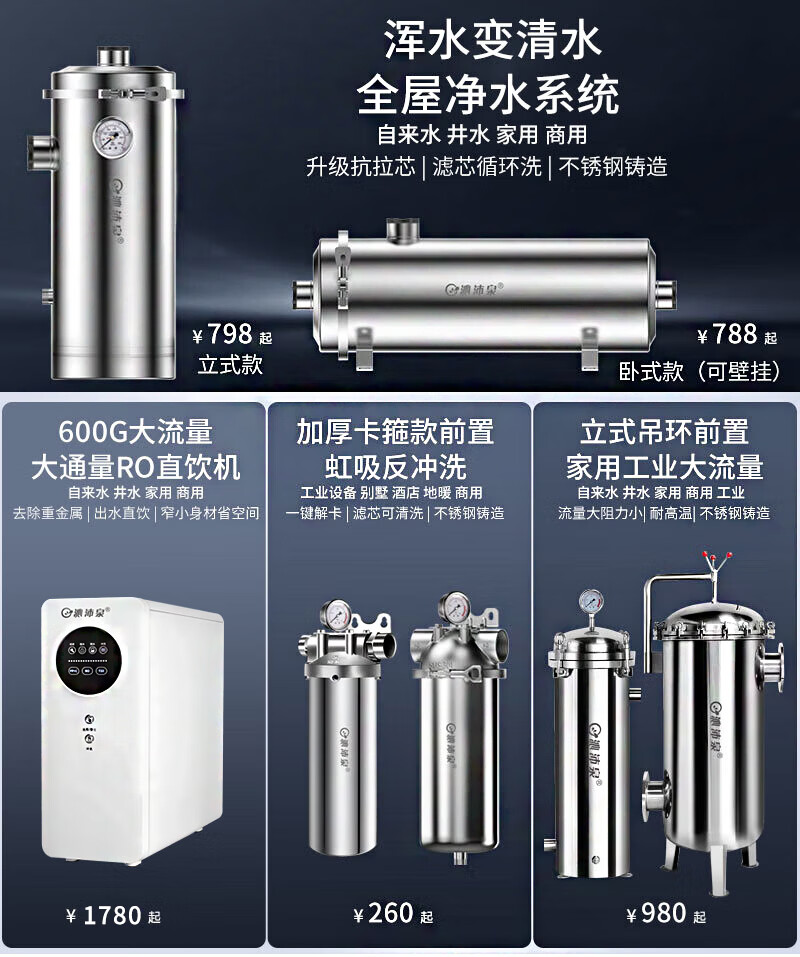 锐普800G锐普纯水机Q8新款家用RO反渗透净水器0陈水净水机通用滤芯U8