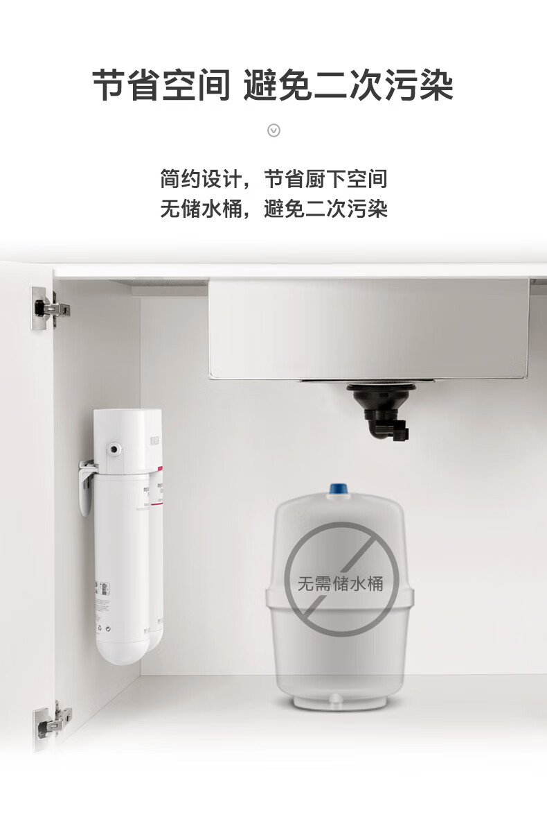 慕辰 MOSSEN净水器家用大通量500G无桶双出水RO反渗透厨房台下式过滤器MR202