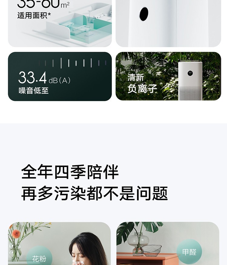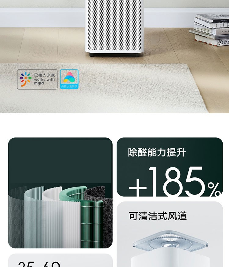 小米有品空气净化器除甲醛家用桌面小型室内吸烟猫毛负离子除臭净化机1947