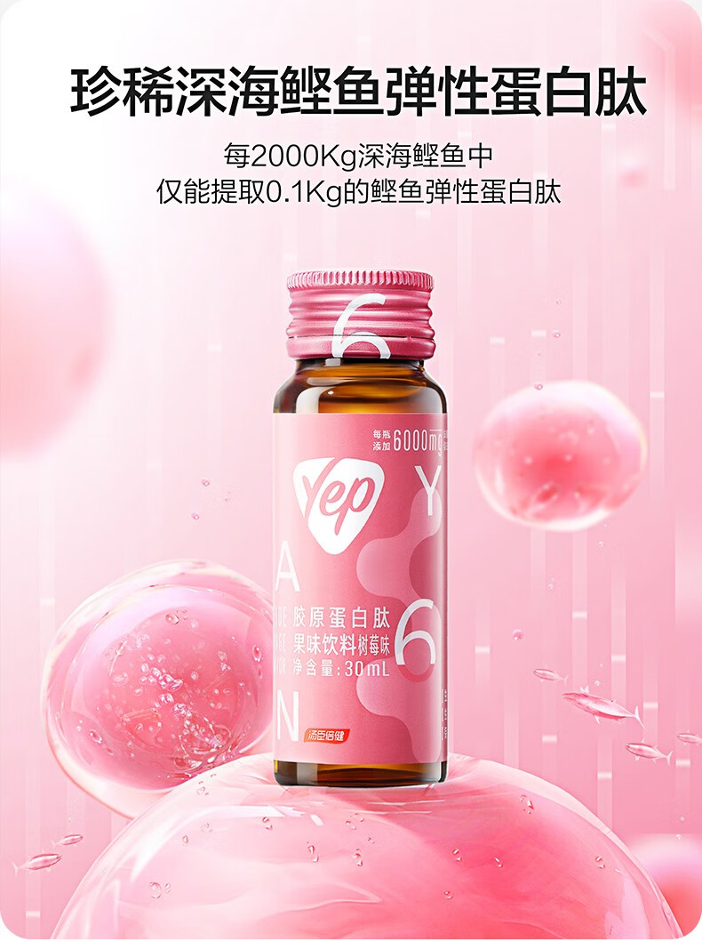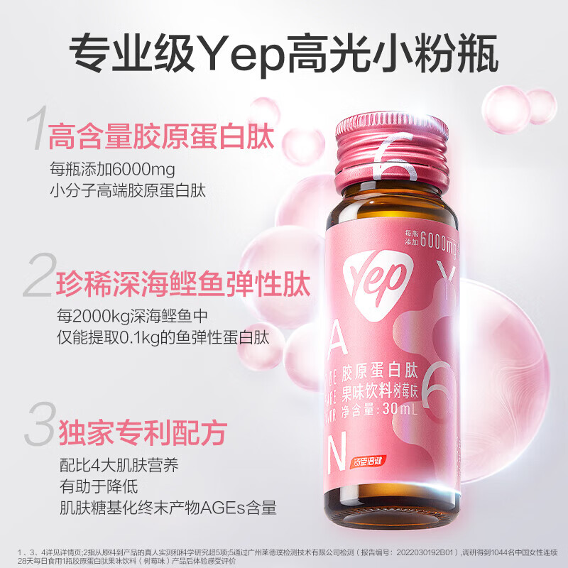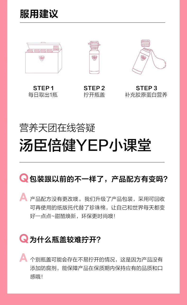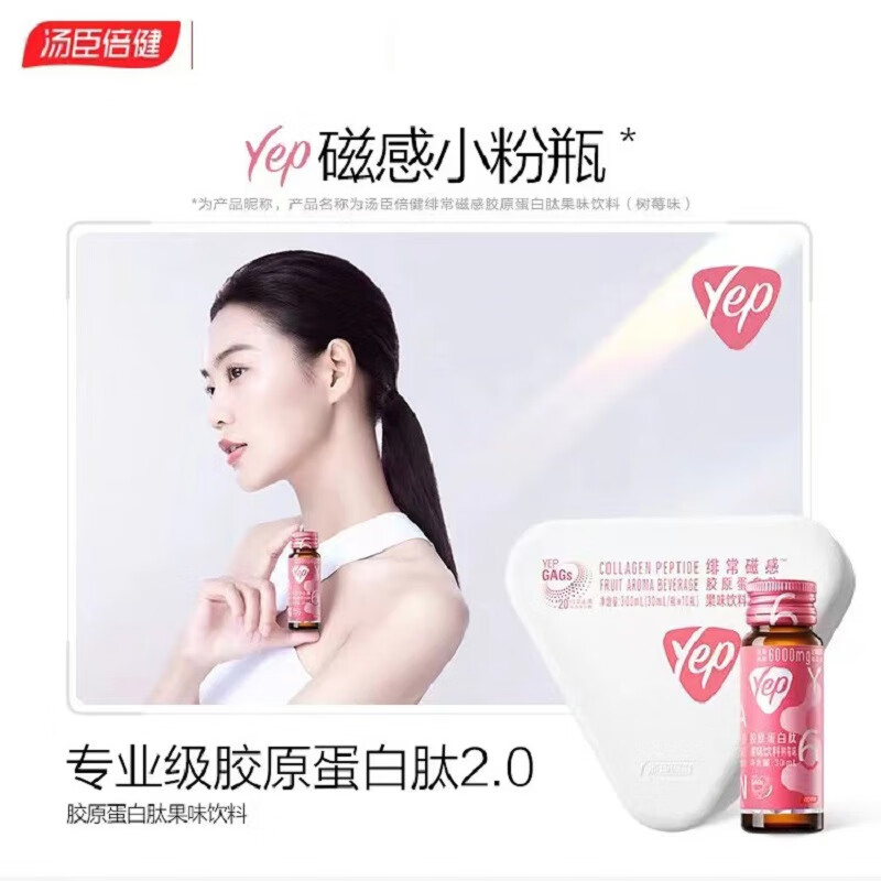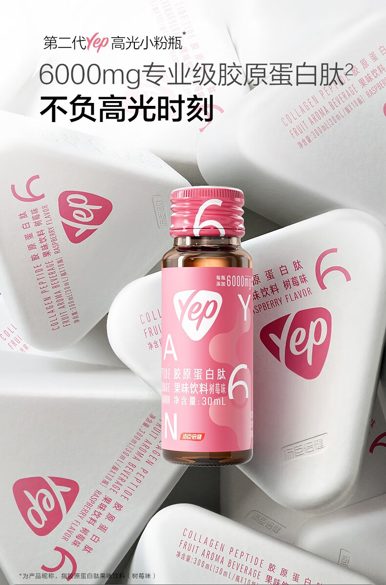 汤臣倍健Yep小粉瓶 6000mg绯常磁感胶原蛋白肽口服液果味饮料树莓味