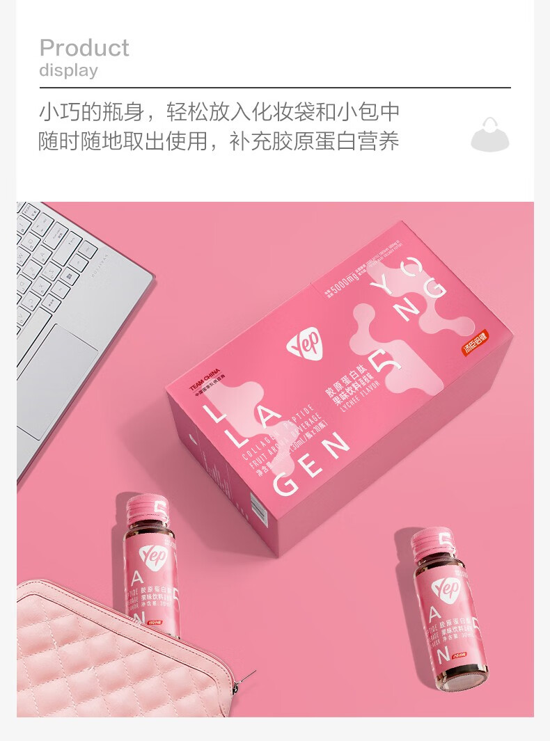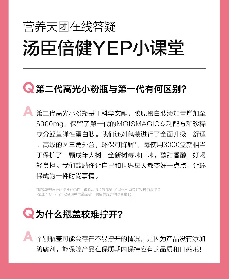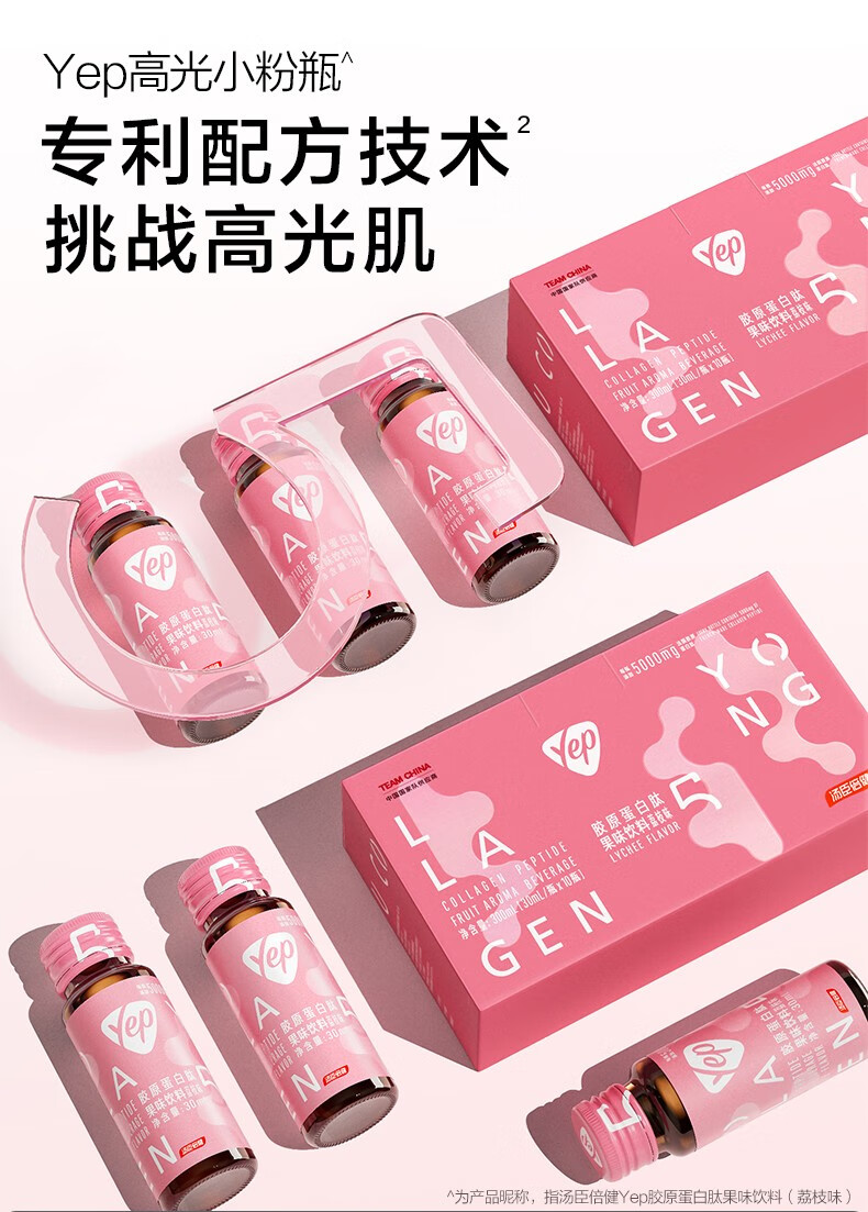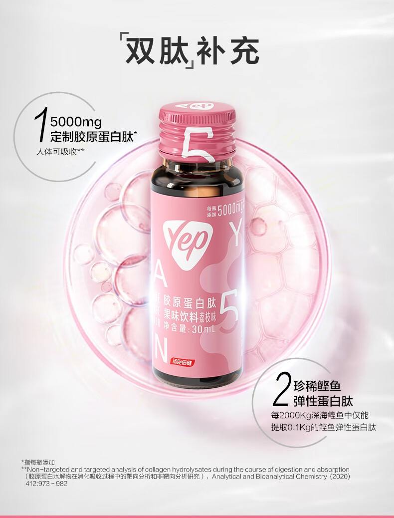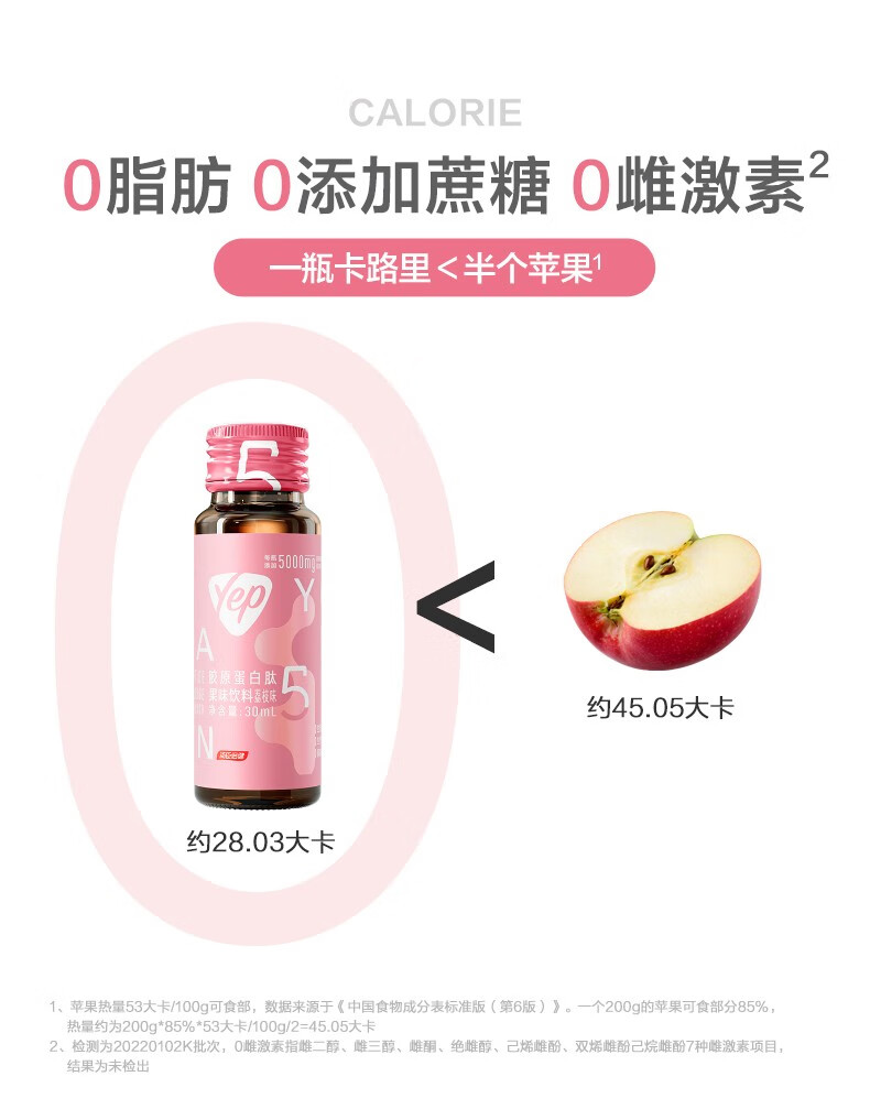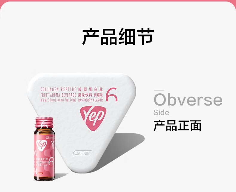 汤臣倍健Yep小粉瓶 6000mg绯常磁感胶原蛋白肽口服液果味饮料树莓味