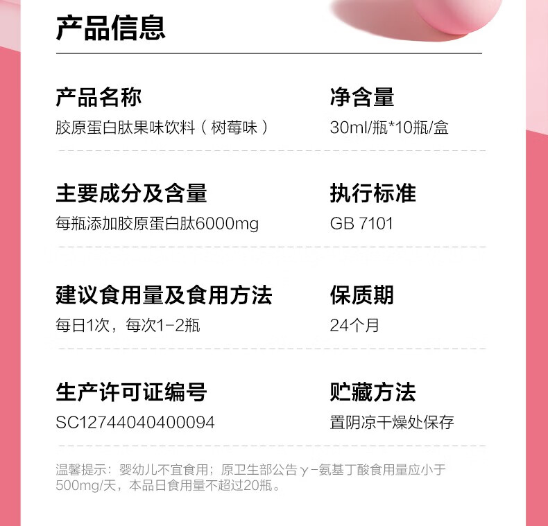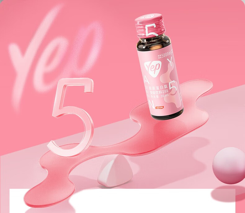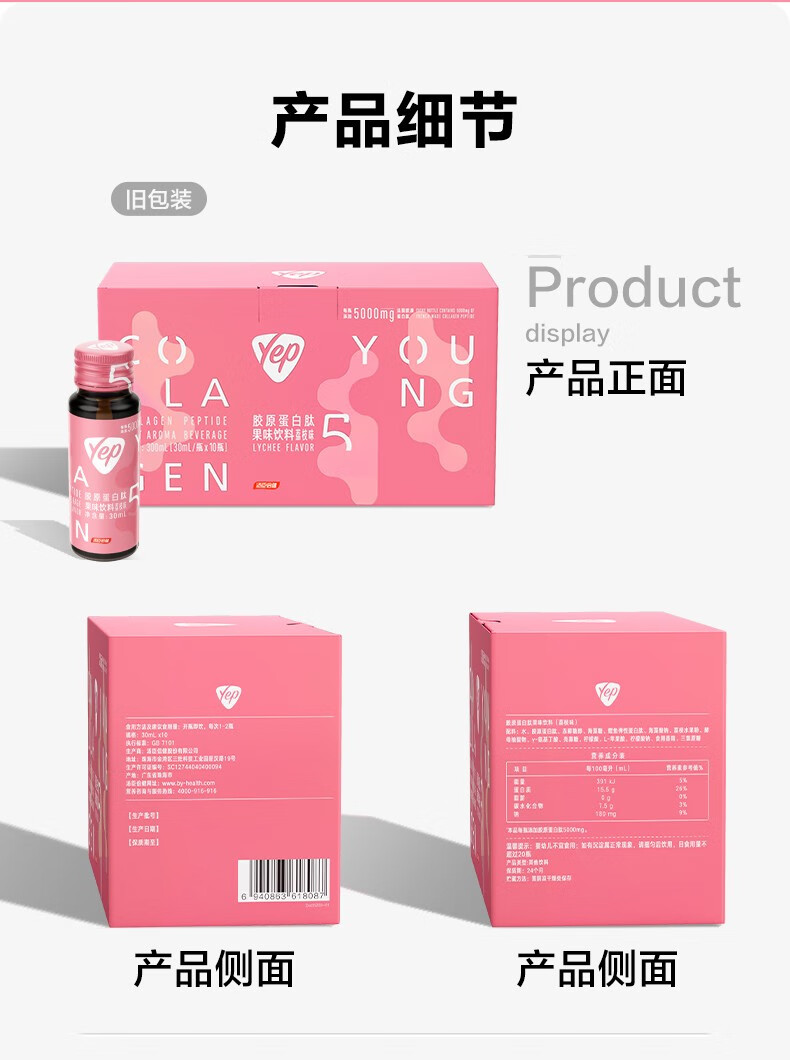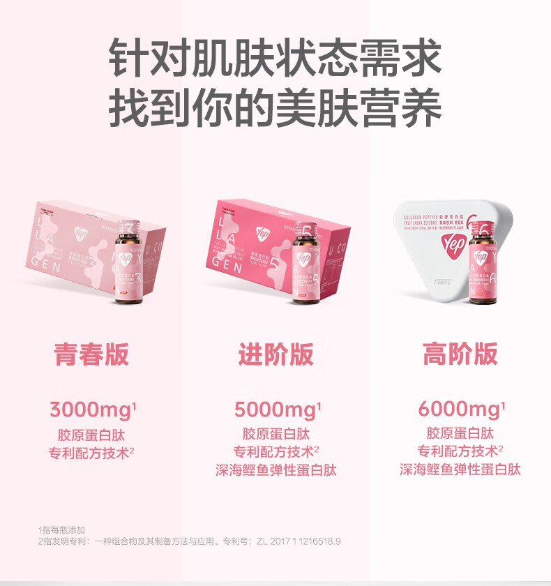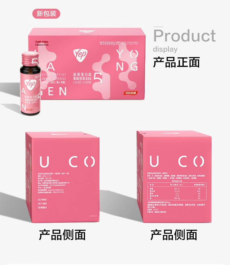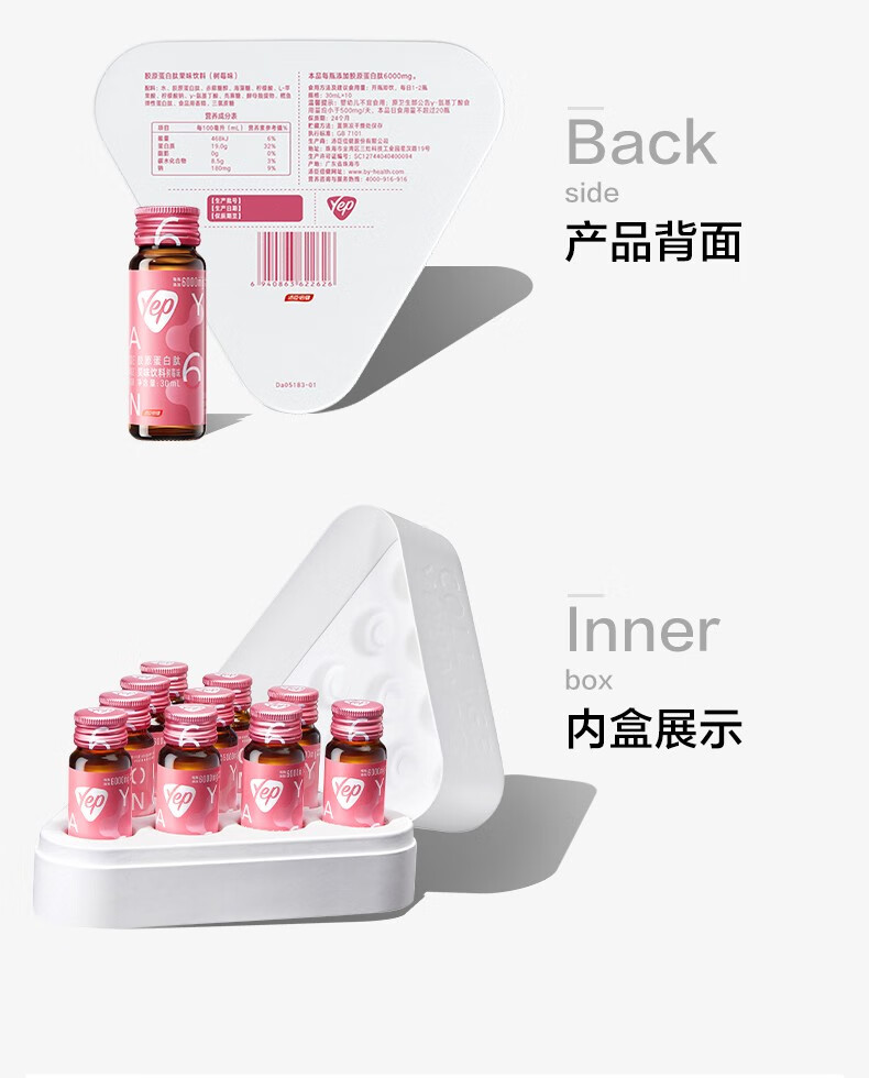 汤臣倍健Yep小粉瓶 6000mg绯常磁感胶原蛋白肽口服液果味饮料树莓味